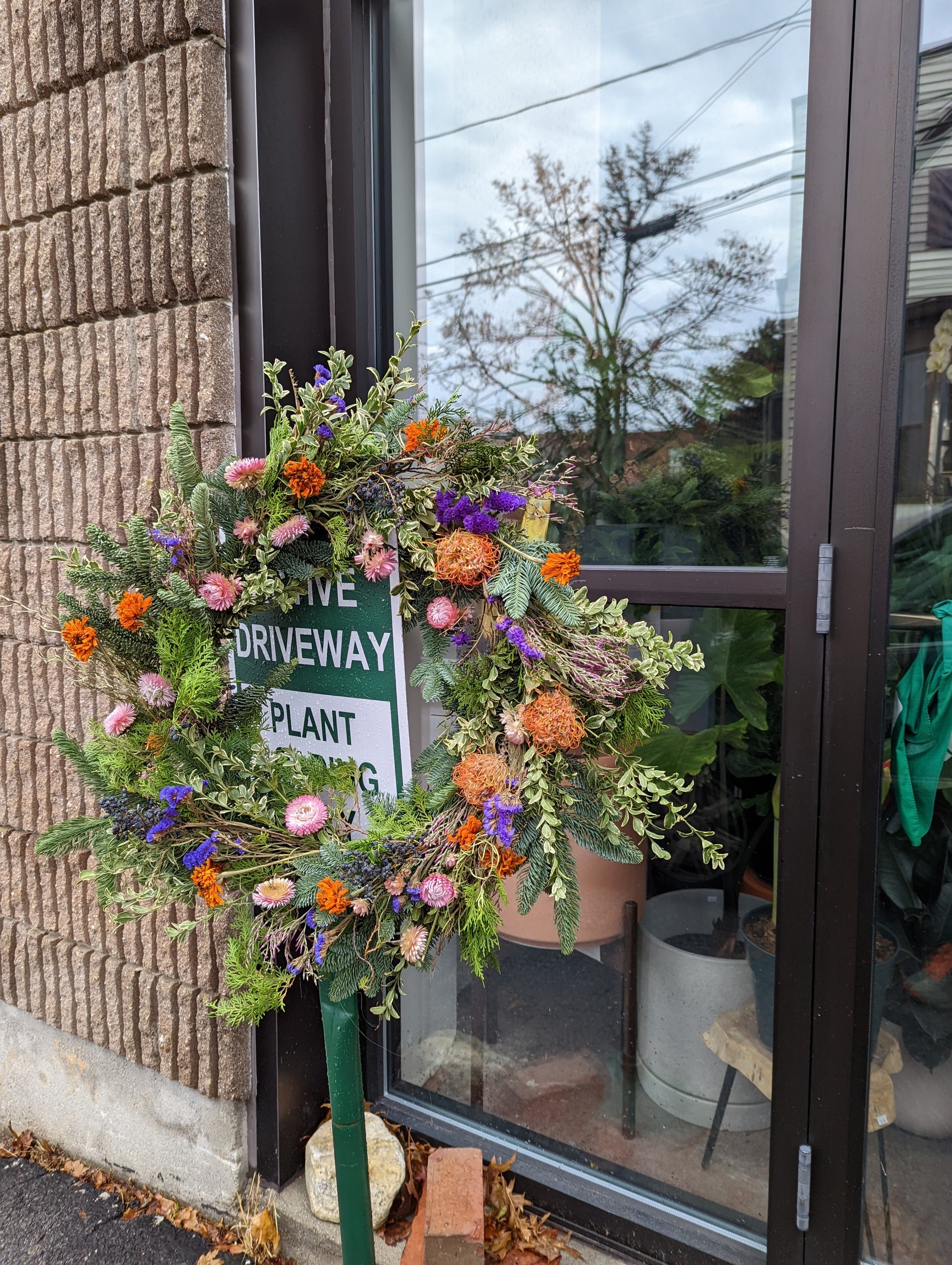 For our fresh pine wreaths, we start with a mix of fragrant pines, cedars, & junipers, mixing in dried elements like eucalyptus, flowers, grains, berries, vines, & more. No two are alike, but they all share a shaggy, organic sensibility. If you have a specific vision in mind, please let us know in the notes as you checkout, or shoot us an email at info@plantoffice.net
